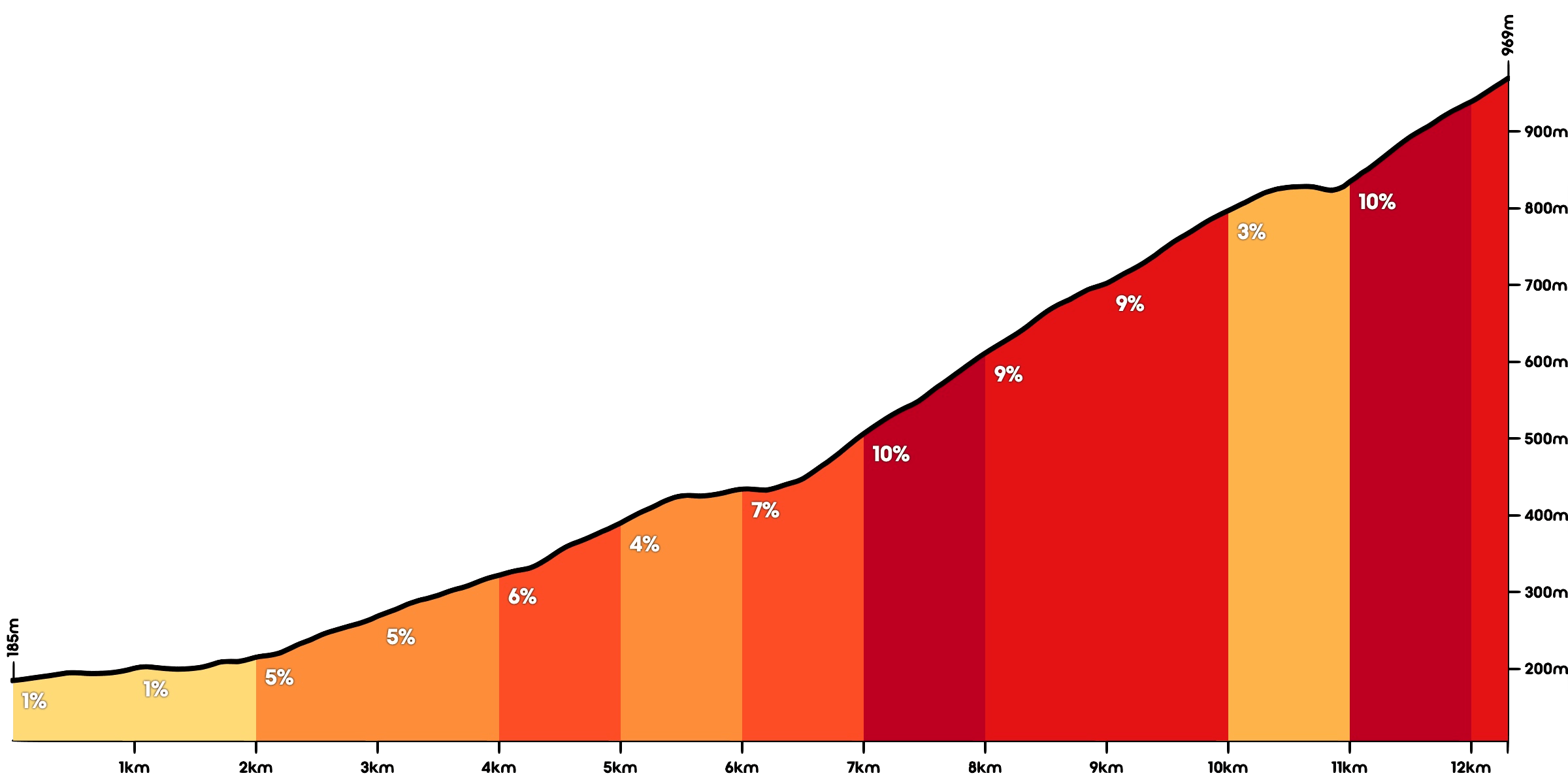 The final 1.5km are at a solid 9.7% which includes several shorter sections above 14%. Towards the top the trees begin to fade and make way for rock formations and stunning views of the Pyrenees. If you compare it to Mallorca, this climb is harder than those found on the island including Sa Colobra.